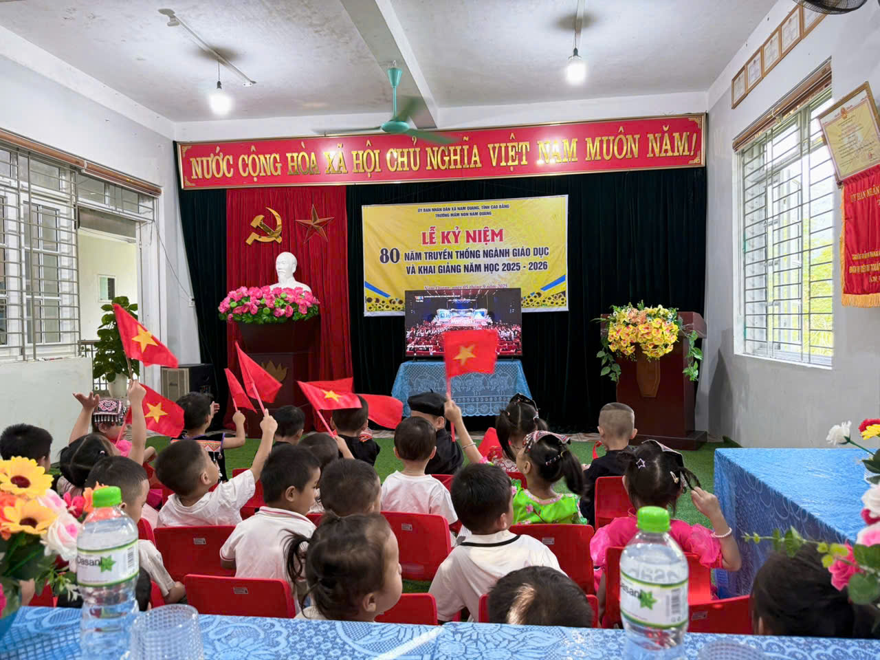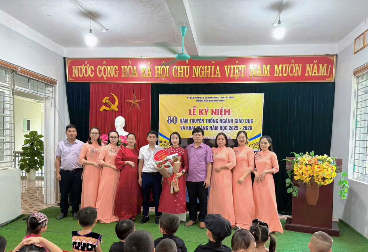 🌟 Trong buổi lễ trang trọng và đầy ý nghĩa này, trường Mầm non Nam Quang vinh dự được đón nhận Cờ thi đua “Đơn vị tiêu biểu xuất sắc dẫn đầu phong trào thi đua” năm học 2024-2025 của UBND tỉnh Cao Bằng. Đây là phần thưởng cao quý, ghi nhận sự nỗ lực, cống hiến và thành tích nổi bật mà tập thể nhà trường đã đạt được trong năm học 2024-2025 và là động lực để cô và trò nhà trường tiếp tục phấn đấu hoàn thành xuất sắc nhiệm vụ năm học 2025-2026.