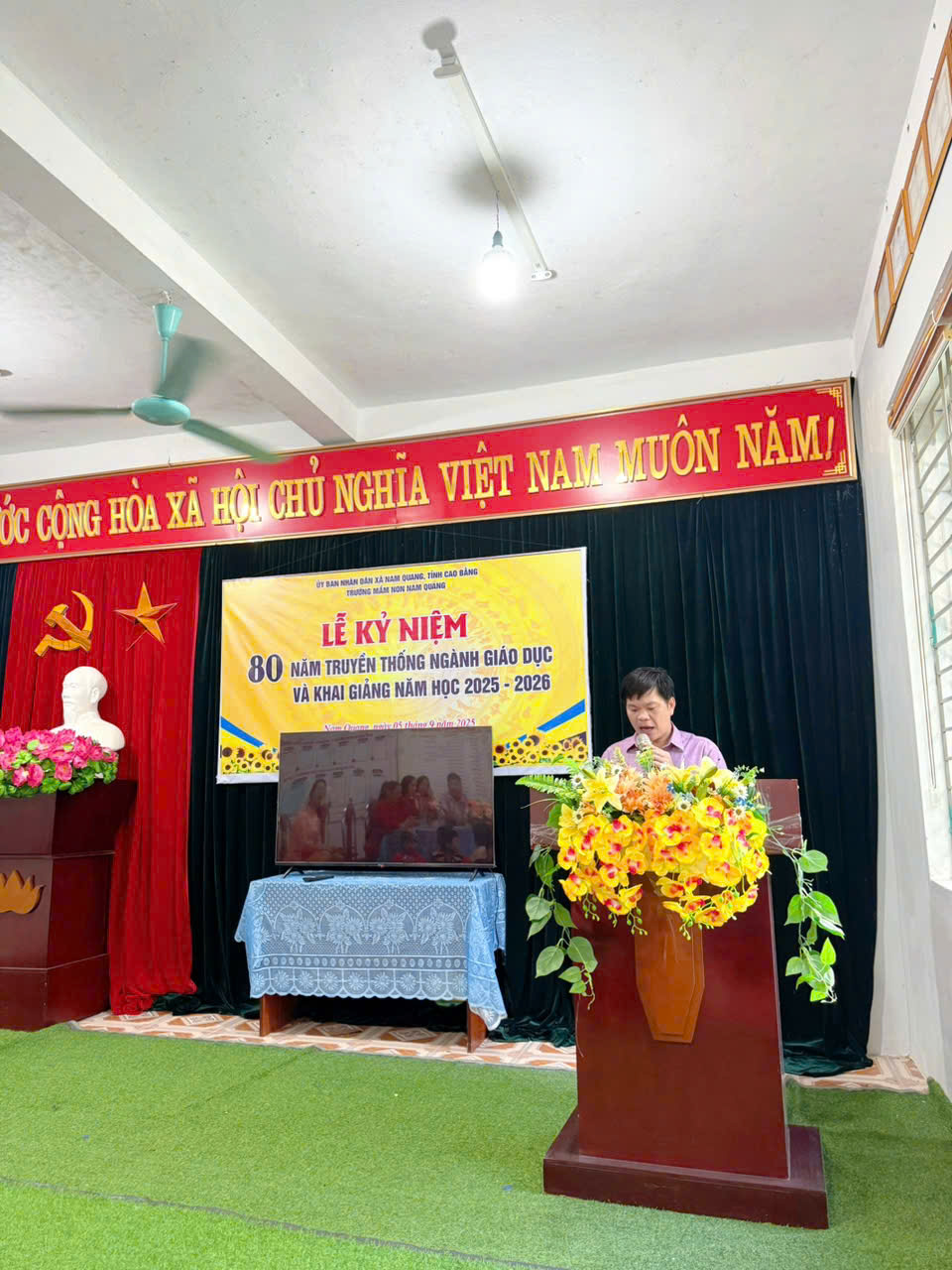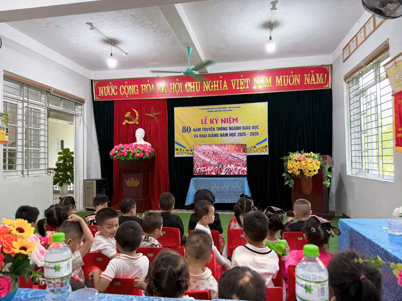 - Hòa chung trong không khí hân hoan của cả nước, sáng ngày 05/9/2025, trường Mầm non Nam Quang long trọng tổ chức Lễ kỉ niệm 80 năm ngày Truyền thống ngành Giáo dục Việt Nam và Khai giảng năm học mới 2025 – 2026.