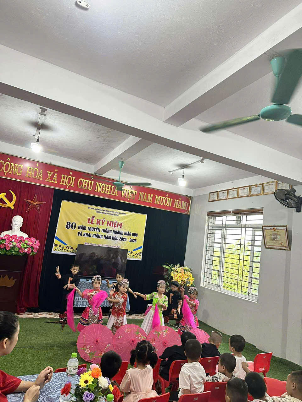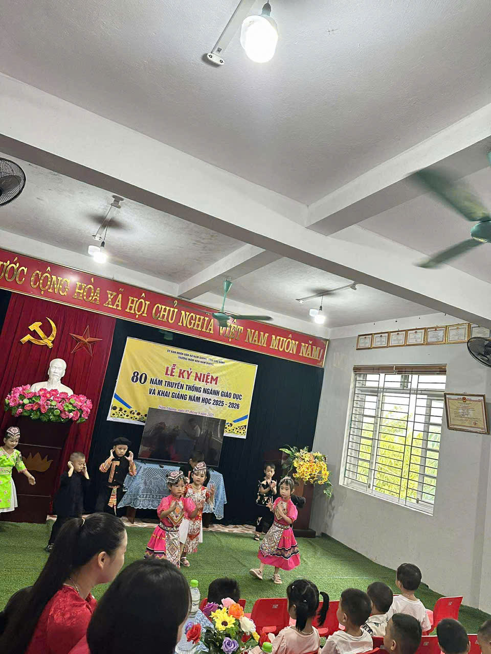 Trong buổi lễ các bé được biểu diễn các tiết mục văn nghệ chào mừng năm học mới, được hoà chung không khí trang trọng, hân hoan của buổi lễ Kỷ niệm 80 năm ngày Truyền thống ngành Giáo dục và khai giảng năm học 2025-2026 được truyền hình trực tiếp trên sóng VTV1.