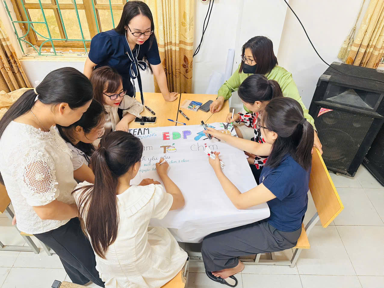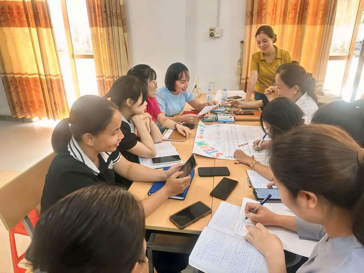 Các cô tham gia chia sẻ, thảo luận thiết kế giáo án theo phương pháp STEAM